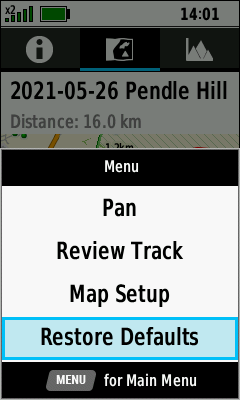 Track statistics are displayed | (Menu) [Map Setup] |