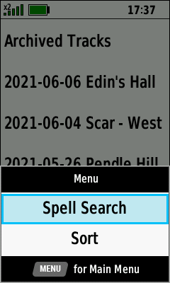 | Select desired track | Open Map Tab (Down) to pan map, or |