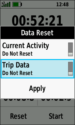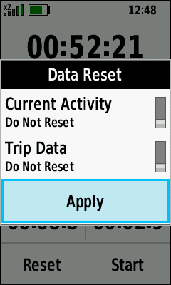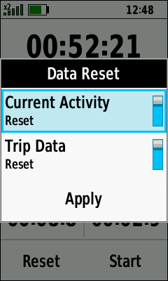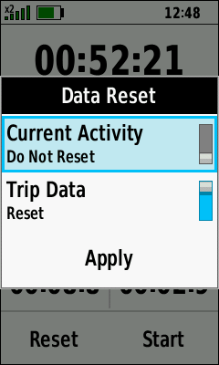 | Data Reset Menu | Toggle [Current Activity] Reset On/Off as desired |