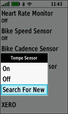 | Select [Setup] | Select [Sensors] | Select [Tempe Sensor] | Select [Search for new] | |