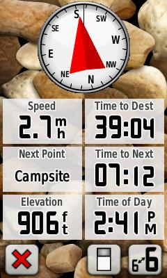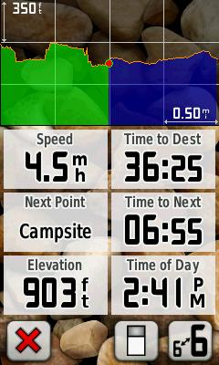 device. With the latest firmware for Oregon and Dakota devices, your device can provide a better navigation experience than before. We’ve added automatic detection of high and low points using elevation stored in the saved track. These points are added to the map and listed on the active route page. If you have significant landmarks, campsites, trailheads, restrooms, or other points saved as waypoints, our new track navigation includes all waypoints located along the track and lists them on the active route page. Listing these waypoints alongside high and low points combines the clarity of saved tracks with the landmarks of traditional routes. Data fields can be selected to provide the distance to, time en route, arrival time, or name of the next point (high point, low point, or waypoint) or destination.