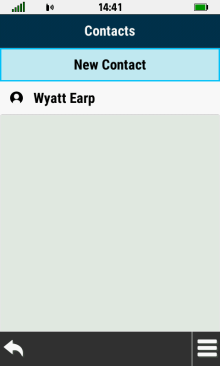 | Open contact list | Select desired contact | View contact details | Exit contact review |