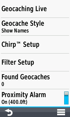 Geocache Alarms will alert at the selected distance |