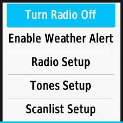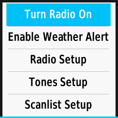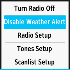 | Turn Radio Off | Turn Radio On | Enable Weather Alert | Disable Weather Alert | |||