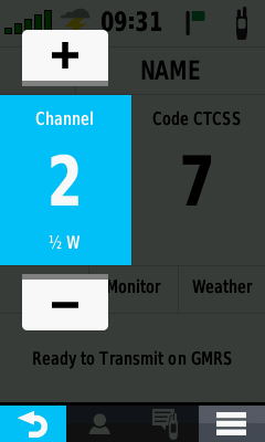 attention tone • Press and Hold to transmit an Emergency Alert •Transmits current position when location sharing is enabled |