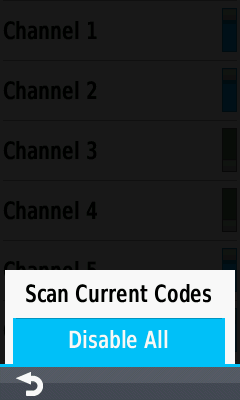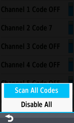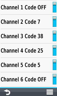 All channels displayed with current squelch codes |