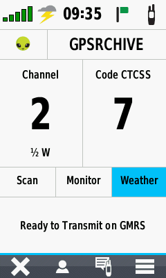 | Press Weather to open weather radio |