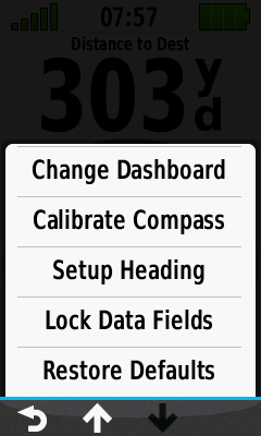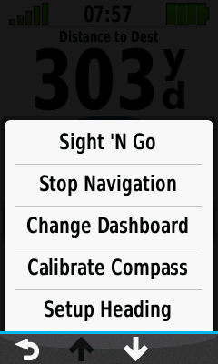 Sight 'N Go Stop Navigation Change Dashboard Calibrate Compass Setup Heading Lock Data Fields