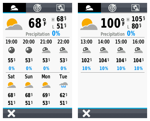 | 8. | Weather Forecast tab frequently fails to load forecast information, instead displaying 'Waiting for data' indefinitely, even while Weather Radar tab data and GCLive data functions perform properly. | [370] [380] [400] [410] [420] | |