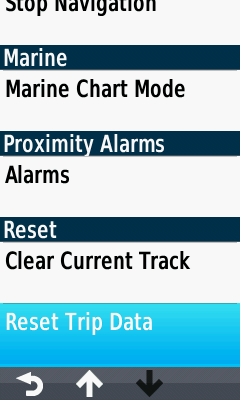Reset Trip Data options |