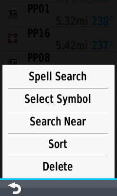 Waypoint menu options |