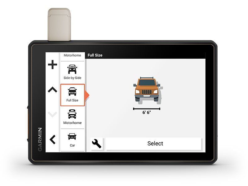 | Wirelessly pair Tread with select Garmin GPS dog trackers (sold separately) to help track and retrieve your sporting dogs in the field. You’ll see markers for each dog within tracking range, overlaid right on the navigator’s map screen. | Get enhanced performance with the robust external GPS antenna and external inReach antenna, each sold separately. Both are in a low-profile, water-resistant housing and have many installation options. |