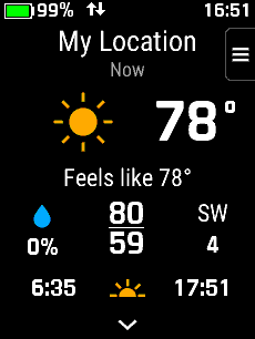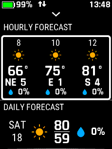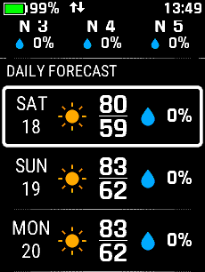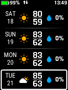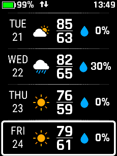 | Select desired day | Select desired time | View forecast details | View additional forecast details |