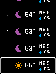 daily forecast information, in two hour intervals, up to