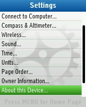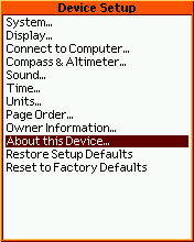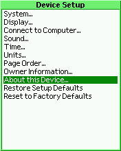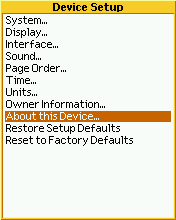 - Scroll to About this Device... and press ENTER.