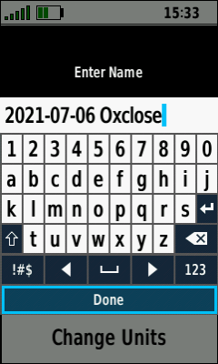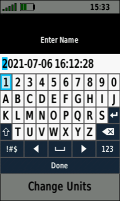 | [Save Track] | Edit track name if desired | [Done] | Saved track confirmation |