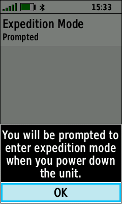 (You will be prompted to enter Expedition Mode when powering the GPSMAP 66i off)