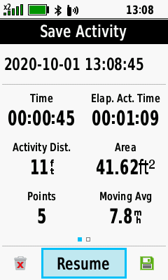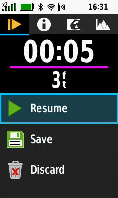 | Resume current activity tracklog recording |