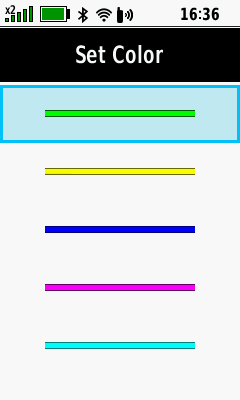 | (Menu) [Set Color] | Scroll available colors | Select desired color | Activity color is updated |