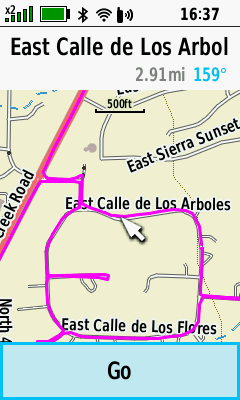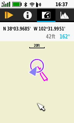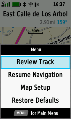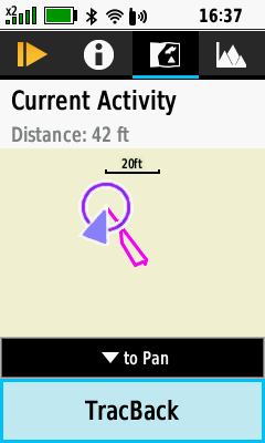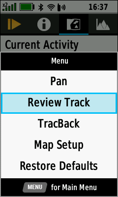 | D-PAD (Down) to pan map | Pan map as desired | (Menu) [Review Track] | View current activity details |