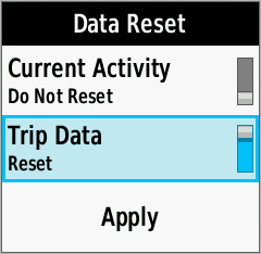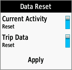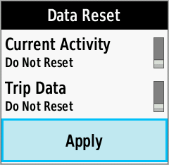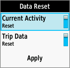 | Data Reset Menu | Toggle [Current Activity] Reset On/Off as desired |