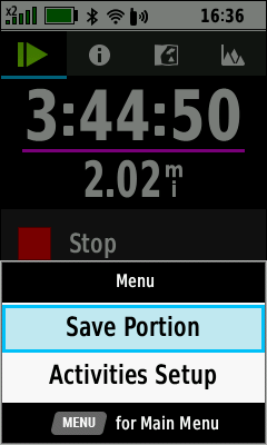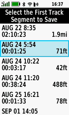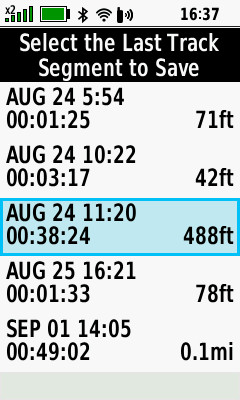 | (Menu) [Save Portion] | Select first track segment | Select last track segment | Edit track name if desired |