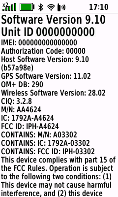 IMEI, GPS, OM+ DB, Wireless and CIQ versions are displayed: