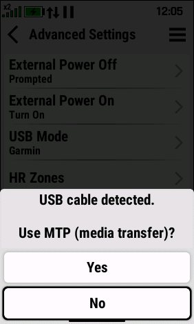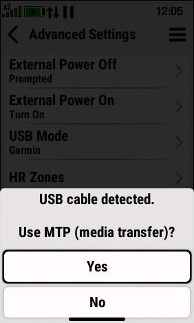 : The GPSMAP H1 will prompt the user to enable MTP Mode: