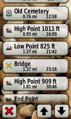 device. With the latest firmware for Oregon and Dakota devices, your device can provide a better navigation experience than before. We’ve added automatic detection of high and low points using elevation stored in the saved track. These points are added to the map and listed on the active route page. If you have significant landmarks, campsites, trailheads, restrooms, or other points saved as waypoints, our new track navigation includes all waypoints located along the track and lists them on the active route page. Listing these waypoints alongside high and low points combines the clarity of saved tracks with the landmarks of traditional routes. Data fields can be selected to provide the distance to, time en route, arrival time, or name of the next point (high point, low point, or waypoint) or destination.