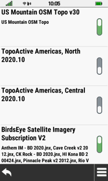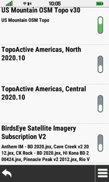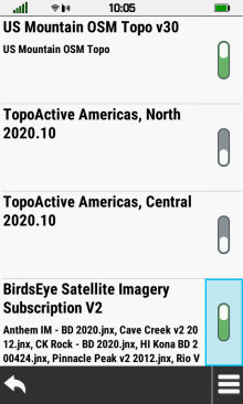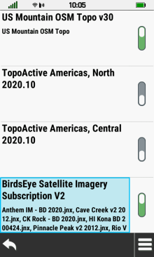 | Select toggle to quickly disable | Select BirdsEye title to open map configuration menu |