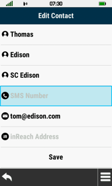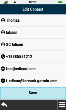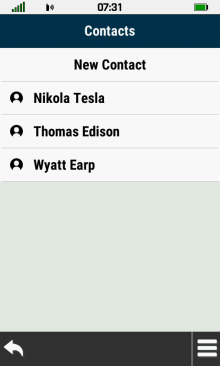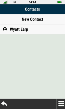 | Open contact list | Select desired contact | View contact details | Exit contact review |