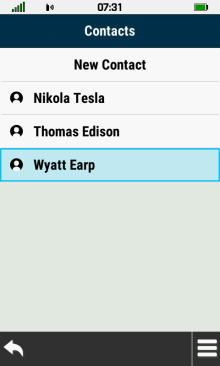 | Open contact list | Select desired contact |