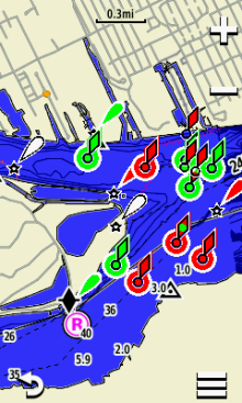 Fishing (Simplifies map presentation for optimal viewing of bottom contours and depth soundings, requires marine maps)