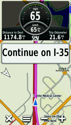 | Select [Continue on I-35] to view detailed driving instructions for current route. | ||