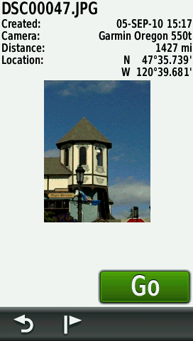 [View Map] shows image location. [Go] Navigate to location. |