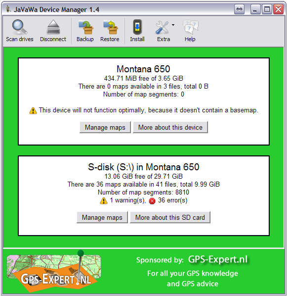 JaVaWa Device Manager (JDM) to enable/disable maps to be used with BaseCamp as desired.