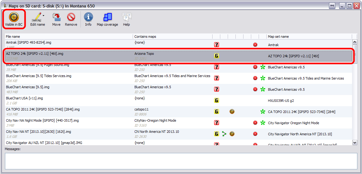 8. Select the desired map and toggle "Visible in BC" from the menu bar