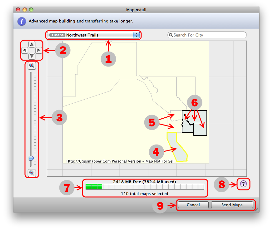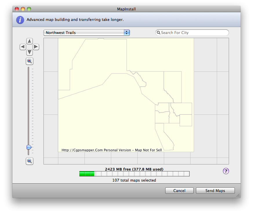 Select "Cancel" to start over or select "Send Maps" to send all enabled map segments to the selected device