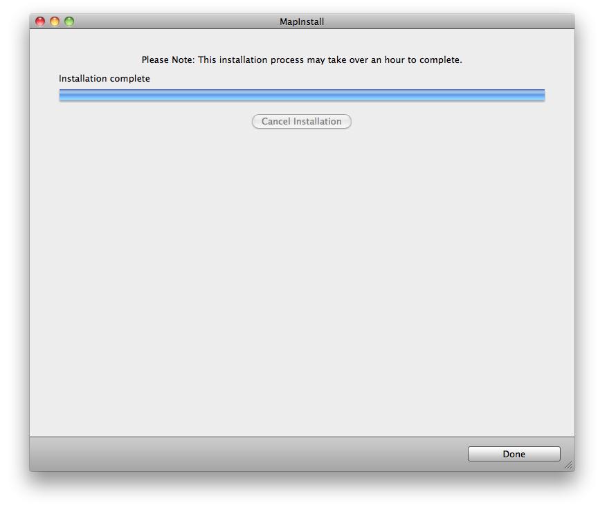 11. MapInstall confirms all scheduled map maintenance was successfully completed