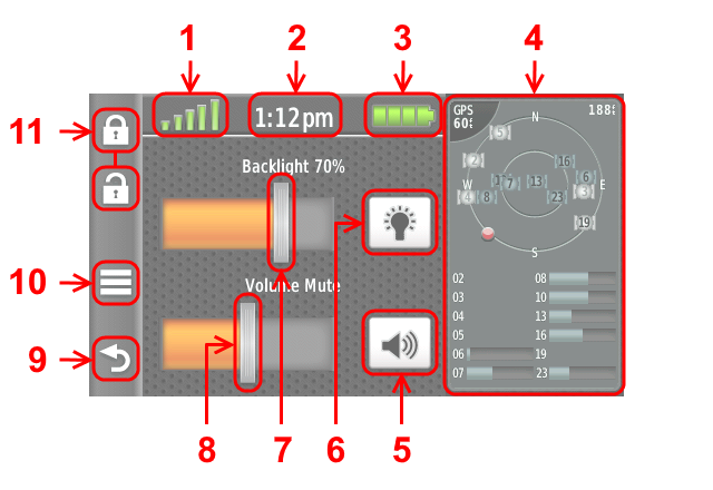 - Selecting the lock icon will toggle the screen lock status and return to the active application