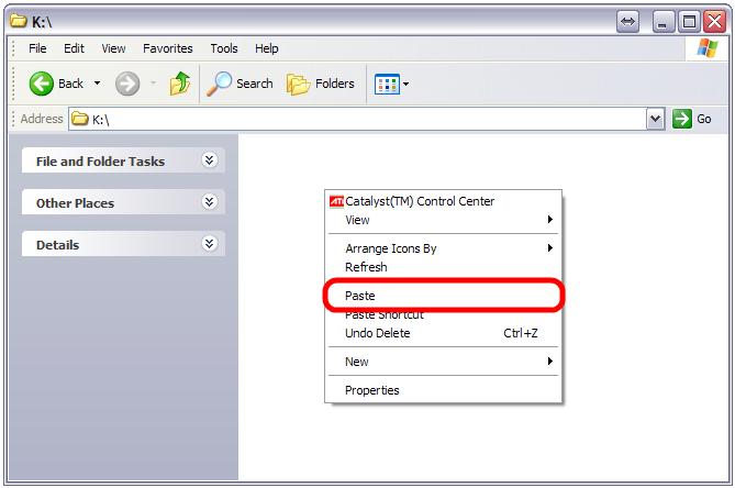 5. Open root directory of USB FlashDrive, Right Click and "Paste"