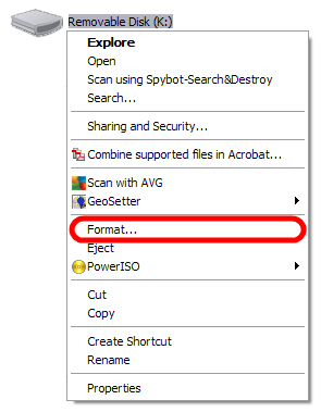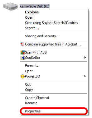 5. Right Click the FlashDrive/µSD Card and select "Properties"
