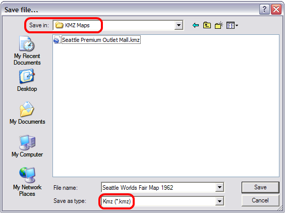 - Select the directory you wish to save the Garmin Custom Map to ("KMZ Maps" in this example).