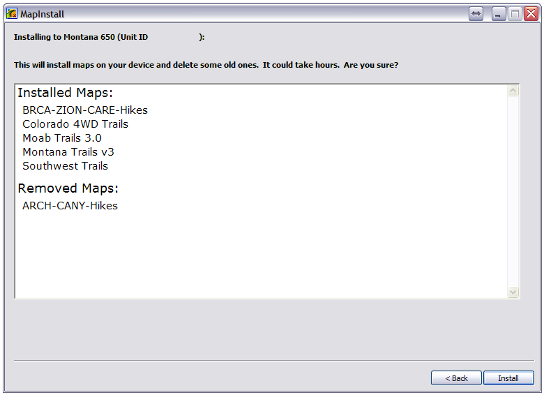 6. Deselect "Already Installed" maps to schedule removal