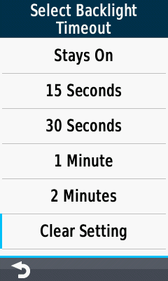 Backlight Timeout options |
