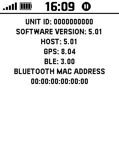 - The device software version, unit ID, GPS and