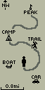 The Map page provides a picture of where you are, where you are going (path to destination), where you have been (track log), and waypoint names and symbols.