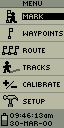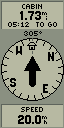 When moving with a destination selected (navigating), the name of the destination waypoint, as well as distance and time to destination are displayed in the upper data field. Simply follow the Compass arrow to find your destination.