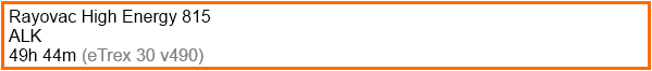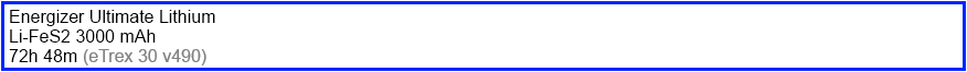 For the purpose of these tests, a eTrex 30 was adjusted for minimal operational status (Our test simulated using the GPSr primarily for tracking purposes) in an attempt to record best case scenario results. Combining this information with the power consumption chart above, one can approximate the useful lifespan for a chosen power source.