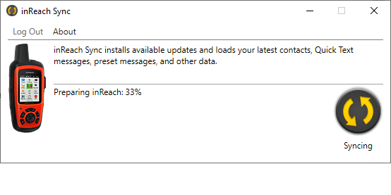 ○ Connect the inReach device via micro-USB cable. ○ Launch the inReach Sync application on your computer. ○ Enter inReach account credentials for device when prompted. ○ inReach Sync will automatically detect your device and begin syncing. ○ Newer firmware versions will be installed. ○ Contacts, Quick Text and Preset Messages are updated. ○ Available map updates are transferred to the device. ○ The inReach device is restarted. ○ Close inReach Sync when the sync process is complete. |